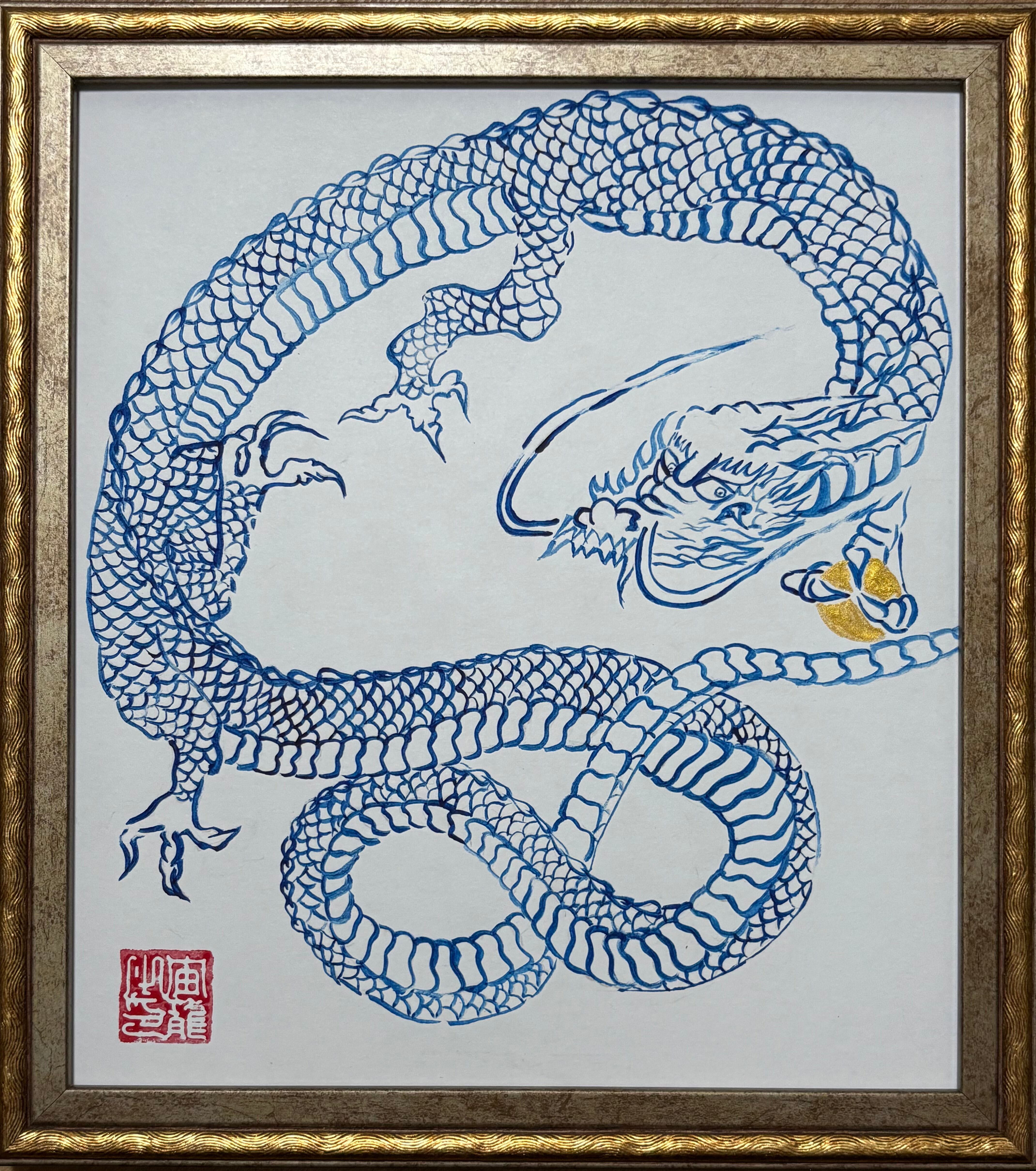 護符アート『青龍』★龍と天然石を身近に感じるアート・絵画 色紙サイズ